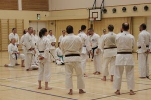 Viikonloppuna olleella leirillä tehtiin harjoitteita monipuolisesti eri taitotaso-ryhmiin jaettuna. Harjoitteita oli kumite (paritekniikka), kata (liikesarja) ja kihon (perustekniikka) osa-alueilta ja niiden sovelluksista. Opetus leirillä oli totuttuun tapaan huippuluokkaa ja oppilaita kannustettiin kysymään heitä askarruttavissa asioissa. Uskallus kysyä tuottaa lisää oppimista ja helpottaa lajin parissa etenemistä, jota suurin osa tavoittelee. Tällä leirillä ei pidetty vyökokeita, vaan seuraavat dan-arvoa tavoittelevat suuntaavat toukokuussa kohti Ahvenanmaata ja siellä pidettävää wado-tekniikkaleiriä.