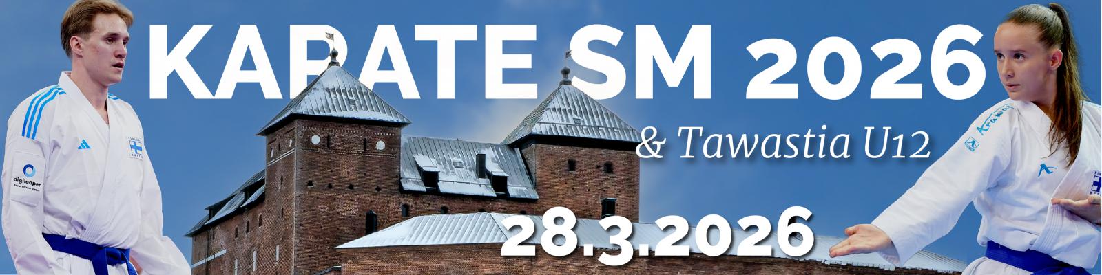 SM-kilpailut (karate) Päivämäärä: 28.03.2026 - 28.03.2026 Sijainti: Hämeenlinna Kilpailut Sportdata: https://www.sportdata.org/karate/set-online/veranstaltung_info_main.php?active_menu=calendar&vernr=10147#a_eventheadend