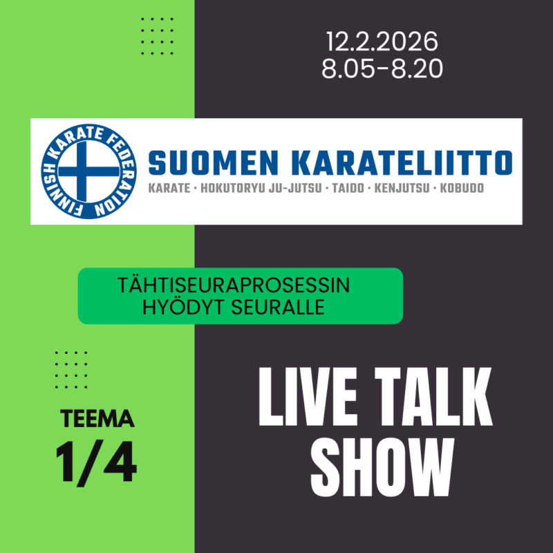 Suomen Karateliiton seuratoimintavaliokunta järjestää keväällä neljän Live Talk Show’n kokonaisuuden Teamsissa.