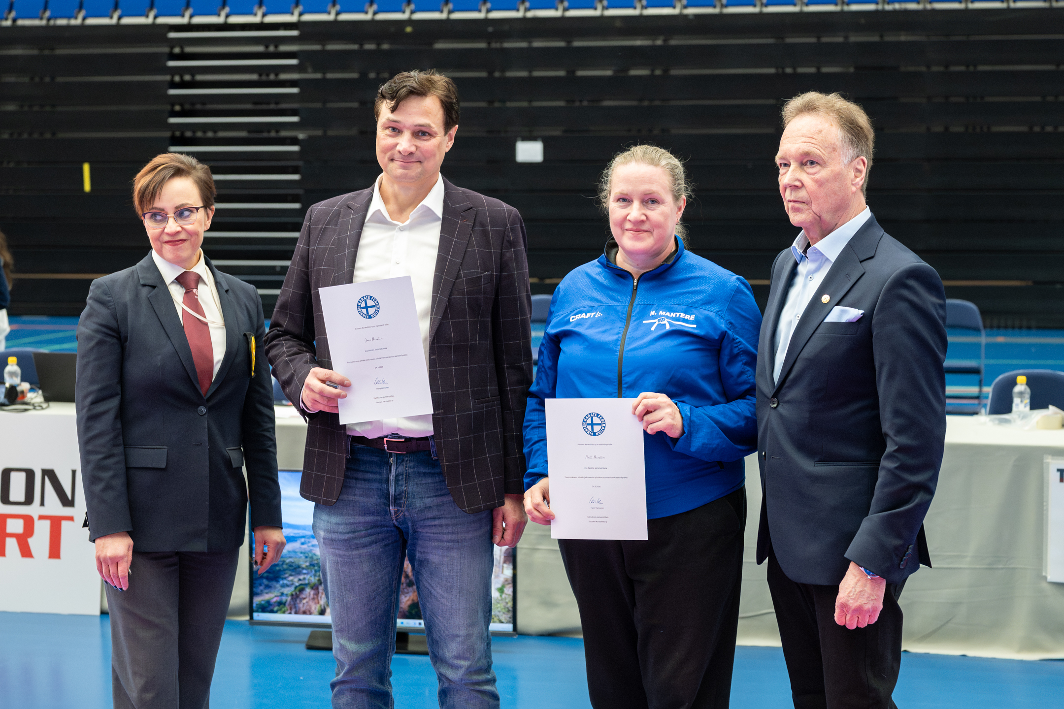 Lassi Saarenmaa palkittiin pitkäaikaisesta tuomariurasta, joka jatkuu, ja pitkäaikaisesta ja ansiokkaasta toiminnasta tuomarivaliokunnassa, joka päättyi nyt.